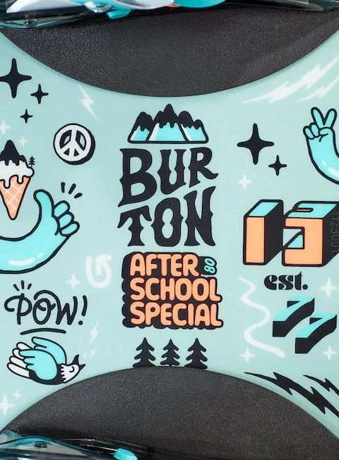 Even the kids know this is the best deal going. Better than watching hours of cartoons, the toddlers’ Burton After School Special Snowboard makes learning a cinch with super soft, parent-friendly bindings and a saucer-like snowboard that teaches balance and board control.