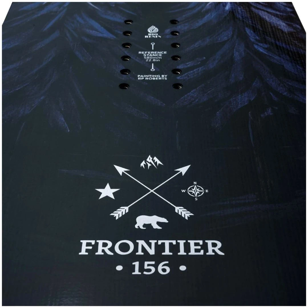Featuring a floaty, freeride nose matched with a freestyle tail, the Frontier is ideal for pow days, park days and every day in between. The Frontier’s Directional shape, Directional Rocker profile and Traction Tech 2.0 edges provide confident stability riding through tech terrain or rough snow while the spooned nose+tail edges on the 3D Contour Base 1.0 reduce edge catch and make it easy to turn in tight terrain.