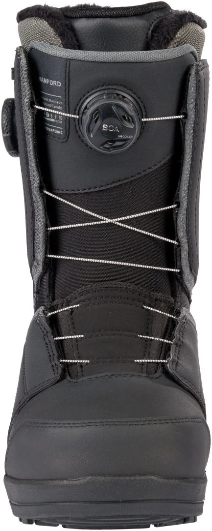 The Hanford starts with a foundation of a zonal closure system and articulating cuff to reduce shell distortion and provide consistent heel hold. The shell lacing features the H4/M3 Zonal BOA® Fit System with TX3 BOA® Rope Laces. Inside, you’ll find our full-wrap 3-point harness surrounding K2’s Pro Foam 3D Liner with Intuition® foam, and it all sits atop our This Grips!™ dual-rubber compound..