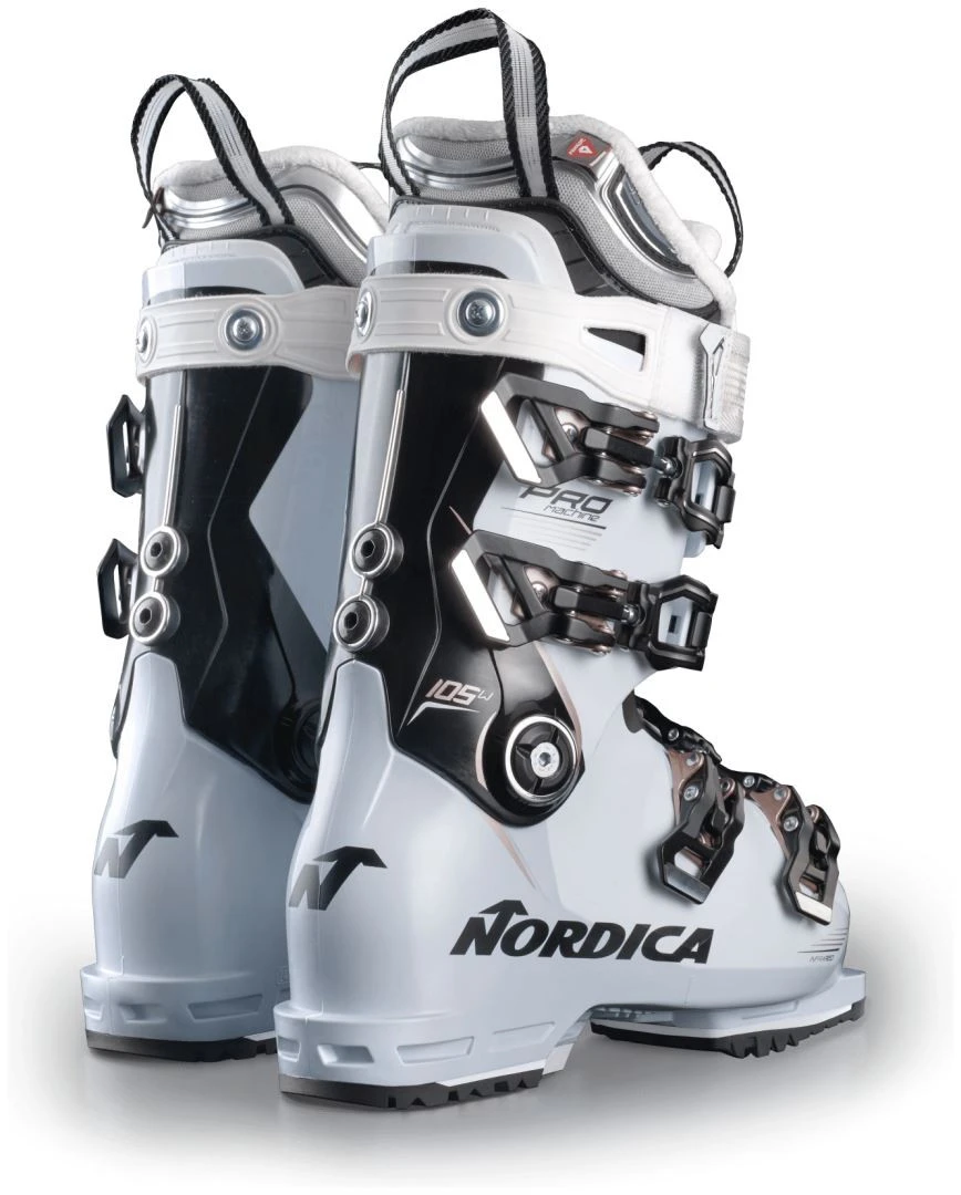 De Nordica Pro Machine 105 W (GW) is een skischoen met een laag volume, geschikt voor smalle voeten of voor skiers die op zoek zijn naar een strakke fit.
