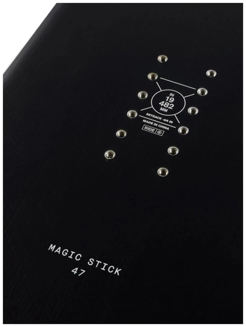 De Ride Magic Stick is een stijf board met goede carve eigenschappen op de piste dat ook op hoge snelheid stabiel blijft. De Magic Stick stuurt precies en heeft de juiste flex voor souplesse en controle in het terrein. De langere tip van het board geeft de Magic Stick zeer goede float in de poeder. Of je je nu bevindt op harde pistes, in ruig terrein of in dikke poeder, de Magic Stick is overal op voorbereid.