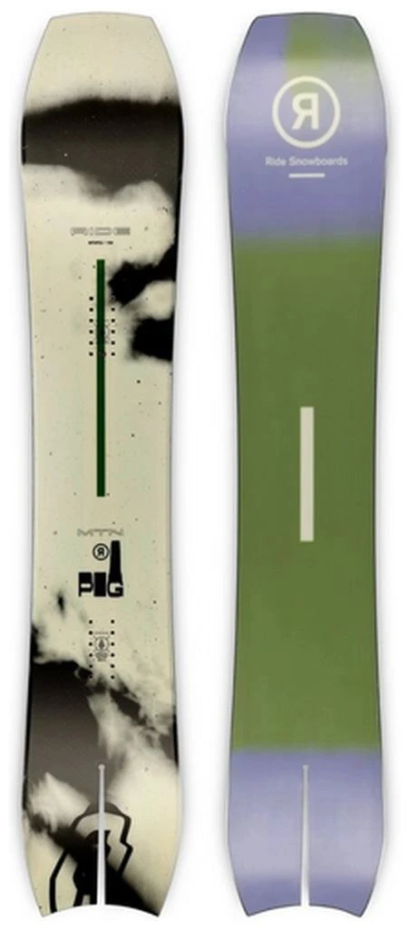 De Ride Mtnpig is een stijf board met goede carve eigenschappen op de piste dat ook op hoge snelheid stabiel blijft. De Mtnpig stuurt precies en heeft de juiste flex voor souplesse en controle in het terrein. De langere tip van het board geeft de Mtnpig zeer goede float in de poeder. Of je je nu bevindt op harde pistes, in ruig terrein of in dikke poeder, de Mtnpig is overal op voorbereid.