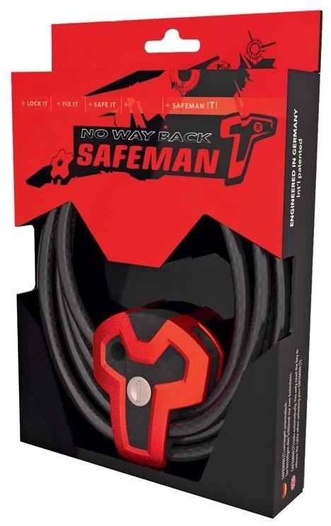 De Safeman-T is de beveiliging voor duurder en groter (sport)materiaal, zoals mountainbikes en racefietsen. Dezelfde handigheid als de Safeman en met een stevigere en langere kabel. Zo zet je eenvoudig het frame en beide wielen tegelijk vast te. Ideaal als je kostbare materiaal langer uit het zicht staat.