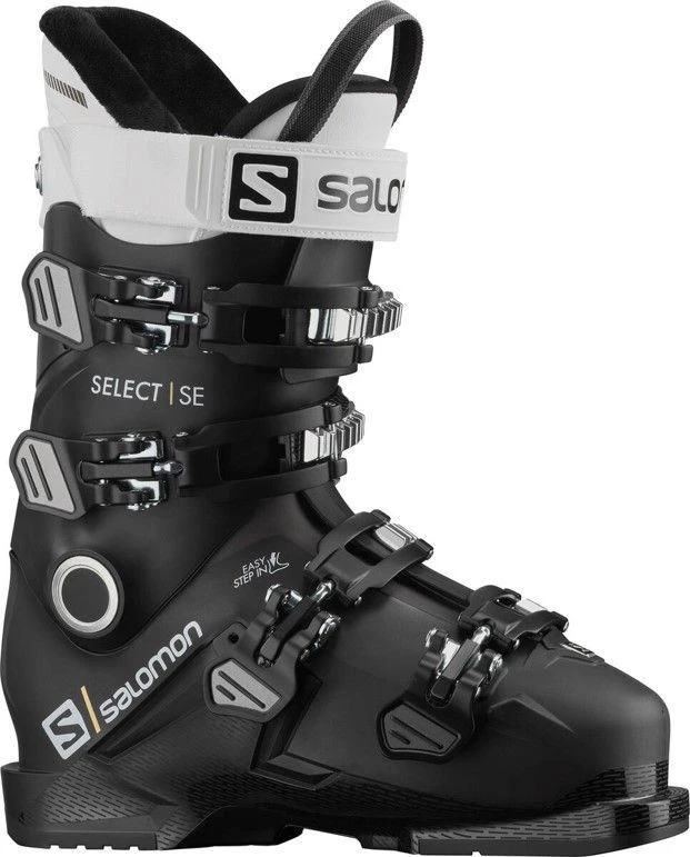 De Salomon Select SE is een skischoen met een medium volume, geschikt voor gemiddelde voeten of voor skiers met een brede voet die op zoek zijn naar een strakkere fit.