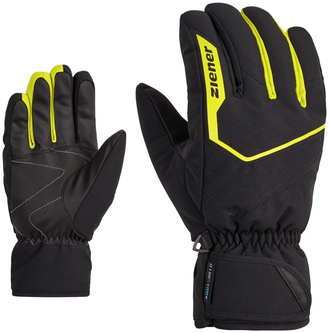 De moderne, sportieve ZIENER skihandschoenen GARIGON AS® zijn de ideale keuze op koude dagen, omdat ze zijn voorzien van een bijzonder zachte voering. Het waterdichte en winddichte ZIENER AQUASHIELD® -membraan zorgt voor een warm en droog klimaat in de handschoen, zelfs bij slechte weersomstandigheden. Dankzij de brede klittenbandsluiting en smalle manchetten kunnen de handschoenen onder de mouwen van het jack worden gedragen.