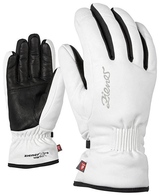 The extra-warm, soft and elegant ZIENER ladies’ ski gloves KARINE AS® PR LADY are equipped with a high-quality PrimaLoft® lining and soft, sturdy palms made of kid leather. The multifunctional softshell material construction with stretch on the backs of the hands is very light, elastic and durable.