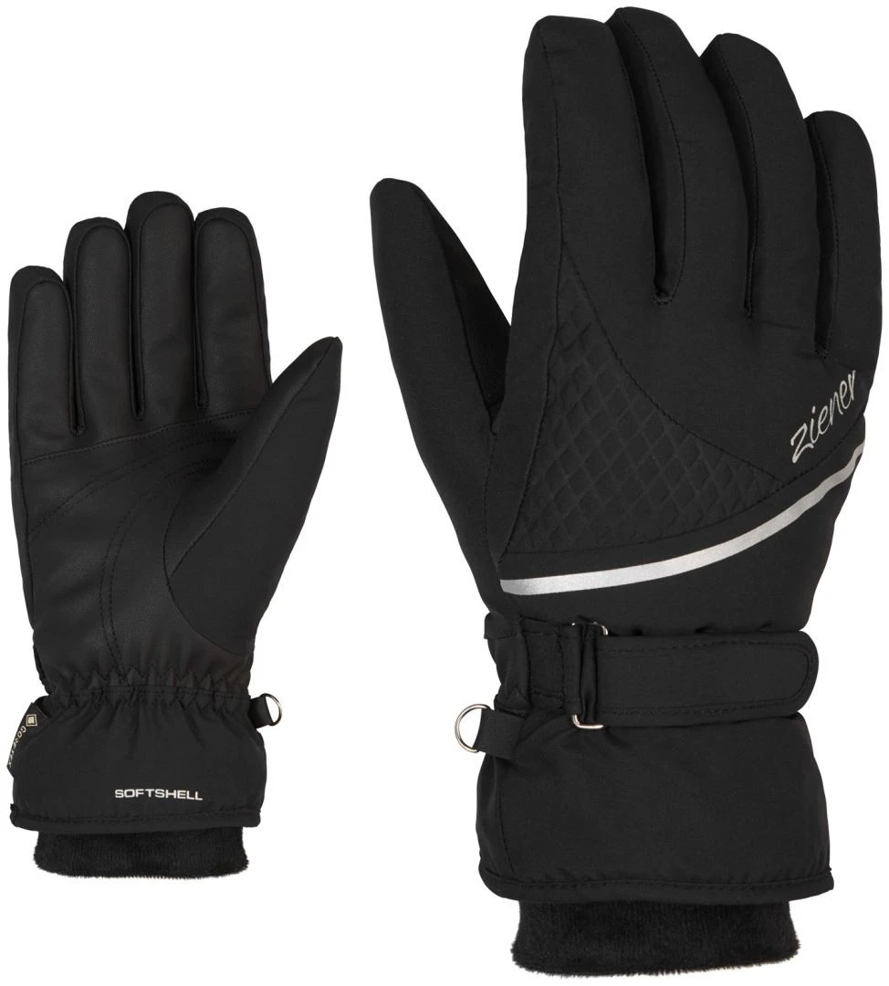 The elegant, warm ZIENER ladies’ ski gloves KIANA GTX + Gore plus warm LADY are equipped with GORE-TEX membrane with Gore plus warm technology and therefore permanently waterproof, windproof, breathable and extra warm – guaranteed! The warm plush lining on the cuffs and the soft padding keep the hands pleasantly warm even on cold days and ensure a feminine look on the ski slope.