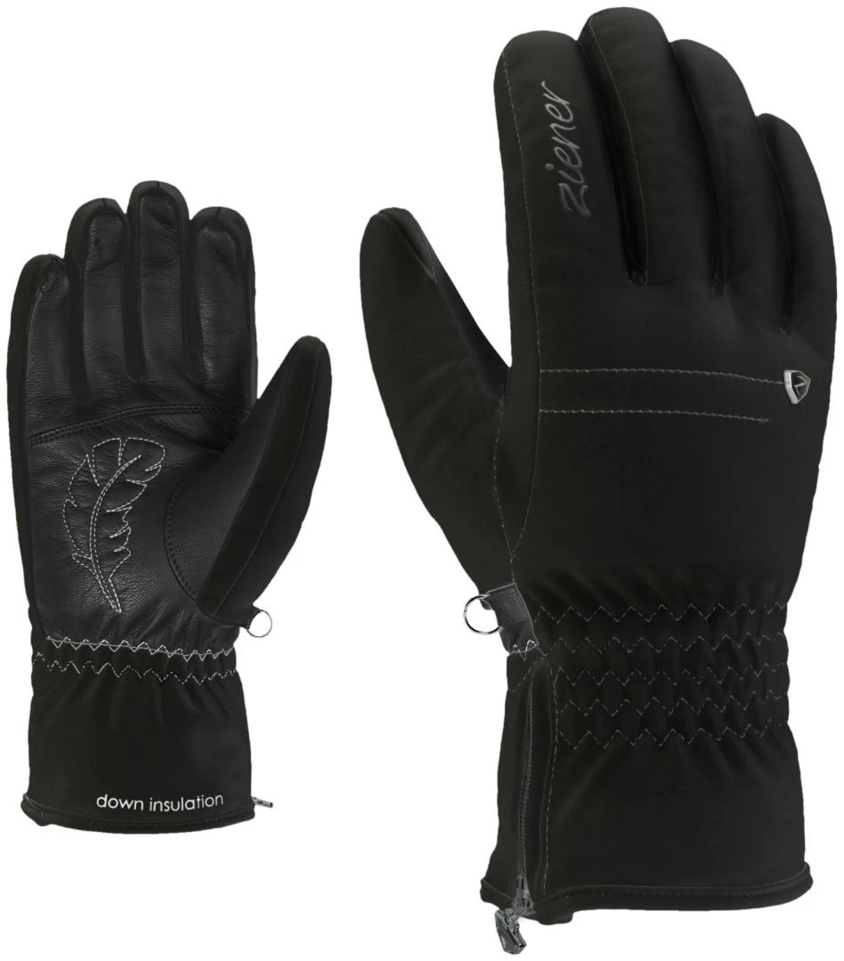 The extra-warm, soft and elegant ZIENER ladies’ ski gloves KYLEE AS® LADY are equipped with a warm plush lining and soft, sturdy palms made of kid leather. The absolute highlight is the Thindown filling. This is a down filling that has been processed into a thin fleece. This filling and the lack of seams prevent cold bridges and make the gloves the perfect choice for cold days.